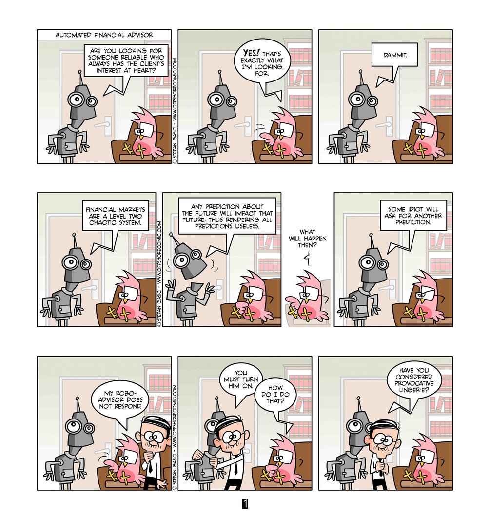 Mini-books are hand-picked Offshore comic strips on a particular topic. This mini-book's topic is the "Roboadvisor".