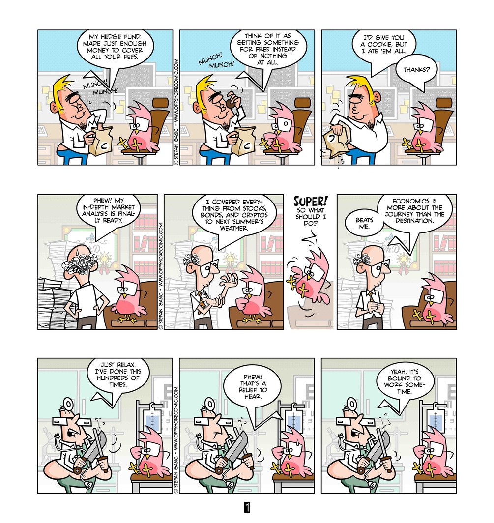 Free money will generate a ton of hilarious investing behavior. Over the last decade we’ve witnessed how classic investment strategies, like buying something below its intrinsic value, have given way to HODLing, FOMO, and MEME-stock investing. That’s the sort of ingenious s**t that only FREE money can buy. To be honest, I blame the professional asset allocators more for the latest financial blow-up than the reckless risk takers. There will always be folks with their hands stretched out whenever free money is handed out. Trained investment professionals, on the other hand, should’ve known better. Investing is hard. I hope you enjoy my comics that cover this and other topics about investing.